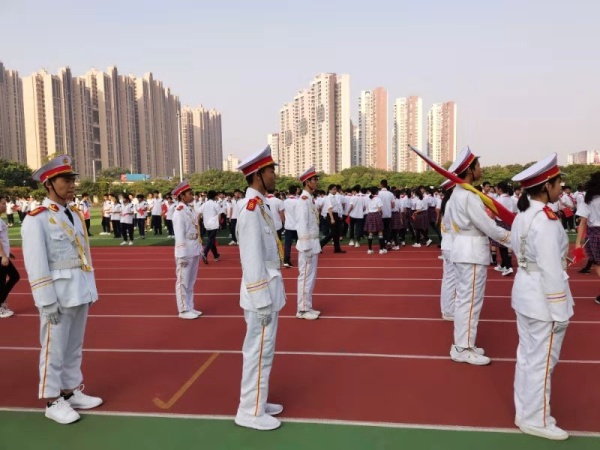2019年9月30日上午,在中华人民共和国成立70周年即将来临之际,中山一中铁城中学组织全校师生举行升国旗仪式及齐唱爱国歌曲活动,唱响“礼赞新中国,奋进新时代”的主旋律,生动展示了铁城中学师生积极向上的精神风貌。