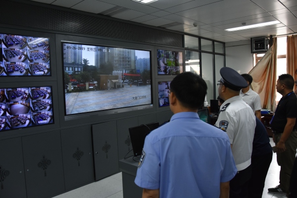 检查组主要针对学校消防设备设施、校园视频监控、突发事件应急处理等情况进行了解,还亲自视察保安室消防报警系统运作情况、警情应对方法,询问一键报警系统使用情况以及处理报警的流程,到学校总控室了解校园视频监控的运作情况,对学校应对突发事件处理给予赞赏。