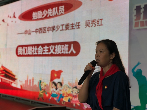 为达到“节俭、隆重、热烈”庆祝少先队建队70周年的目标,让全校师生更好地感受中国共产党及少先队70年来的奋斗历程,教育引导广大少先队员听党的话、跟党走,用实际行动把红色基因一代代传下去,增强少先队员的光荣感及国家和民族自豪感,展现集团化办学背景下的中山一中西区中学的良好精神风貌,进一步打造“志存高远、和谐发展”的校园文化氛围。10月8日上午,李媚娟老师主持了中山一中西区中学庆祝中国少年先锋队建队70周年启动仪式。