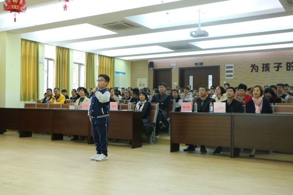 活动开始前,全场两百多人津津有味地欣赏了铁城小学举办的国防教育班会课、手抄报、主题亲子活动等精彩照片,在场的领导嘉宾对铁小举办的各类活动频频点赞。三点半,活动在铁城小学张文君副校长的主持下正式开始。首先,由六(3)班学生代表刘楚铭发言,他号召同学们从身边的小事做起,热爱学习、强健体魄,树爱国之心,立报国之志,心怀强国梦。接着,由老师代表袁军作题为《少年智则国智,少年强则国强》的主题发言。袁老师回顾中国开展国防教育的源远历史,强调“国不富则无称雄之本,兵不强则无争霸之力”的政治主张,并从毛主席、周总理、祖逖、司马光等名人从小立志报国为例,引用梁启超的名句“少年智则国智,少年富则国富,少年强则国强”,勉励全体学生努力学习科学文化知识,走高科技强国之路,用热血筑起一道坚固的国防。接下来,由李嘉俊带全体同学一起朗诵《少年中国说》节选,同学们激情满满,用铿锵有力的朗诵表达报效祖国的坚定决心,充分展示了国防教育的感染力、渗透力。