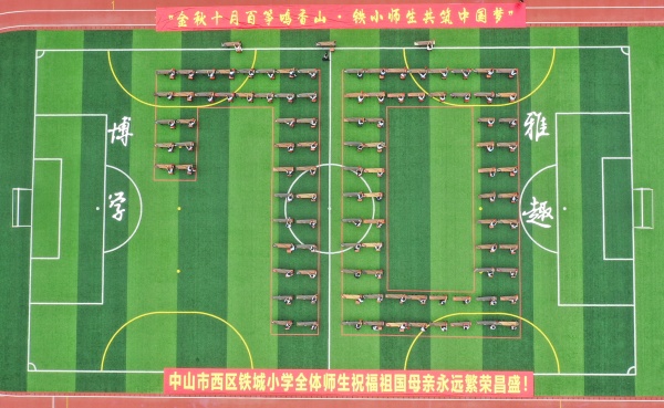 据悉,此次活动以“金秋十月百筝鸣香山·铁小师生共筑中国梦”为主题,于10月15日在学校操场举行。百架古筝的“70”造型,整齐的着装,悠扬的古筝,百人齐聚于操场中央,拨弦弹奏,吟诵叹咏,整个校园都流淌着传统文化的音符,场面蔚然壮观。蒙学经典《三字经》,古典诗词《悯农》和意蕴悠远的《静夜思》,铁小学子们将中华传统经典文化以独特的艺术形式一一呈现,礼献祖国,开创了中山市中小学生百人古筝合奏之历史。
