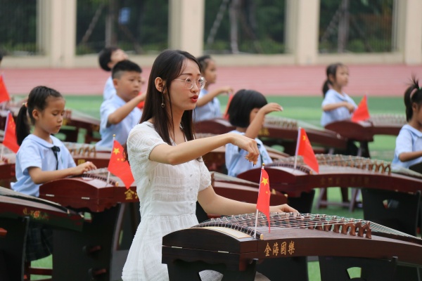 西区铁城小学“以美育人”,致力于弘扬传统文化。该校校长侯洁表示,小学生的爱国主义教育要从中华民族的“根”和“魂”抓起,即“传统文化”。此次活动以新中国成立70周年为契机,通过百筝齐鸣的方式,将艺术和中华传统文化相结合,赋予了爱国教育以独特的艺术形式和文化内涵,引领师生感受到了中华传统文化的独特魅力。