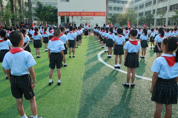 在当天的庆祝仪式上,全体少先队员庄严宣读入队誓词,同学们举起右拳,高声宣誓。据悉,少先队辅导员李海英老师带领各中队辅导员提前对孩子们进行了少先队队前教育,孩子们初步学习了少先队的礼仪和常识,认识了少先队组织。