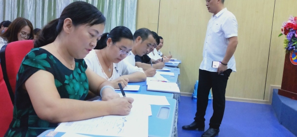 为提高教师的基本功,帮助教师掌握硬笔书法技能,切实提高教师们的书写质量,10月11日晚上,聚星学校董事会特别邀请广东省书法家协会会员、中山市中信左岸蓝青国学馆馆主萧蓝青老师为聚星教师们进行教师基本功培训活动。