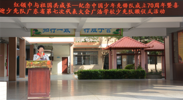 为庆祝少先队建队70周年, 2019年10月12日上午,广浩学校举行了庄严的“红领巾与祖国共成长”庆祝中国少年先锋队建队70周年微仪式活动。