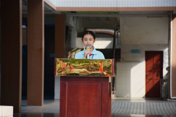 活动最后广浩学校潘琼慧副校长上台也发表讲话。她勉励全体少先队员树立远大的理想,热爱祖国、热爱学习、热爱锻炼、热爱劳动,为做社会主义接班人做最好的准备,希望全体少先队员用实际行动来为胸前的红领巾增添光彩,准备着为共产主义事业而奋斗。