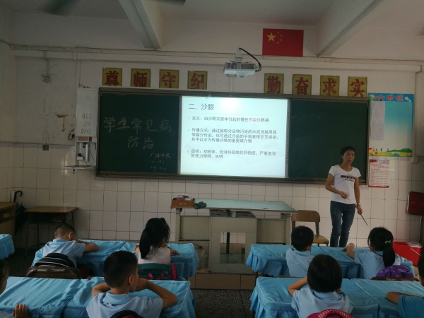 班主任老师运用制作精美的PPT,生动地向学生们详细地讲解了关于视力低下、龋齿、沙眼、贫血的防治和主要措施,还详细解释了营养不良与肥胖的防治六项常见病的预防知识,并对各种常见病的病因、传染源、传播途径、易感染人群、发病年龄、流行特征、症状、防治及主要措施等多方面进行详细阐述。要求学生在日常生活中要注意个人卫生,养成良好的饮食习惯,保持环境清洁,经常锻炼身体,增强身体素质。