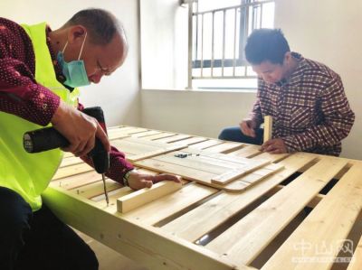 维修义工帮忙安装家具。