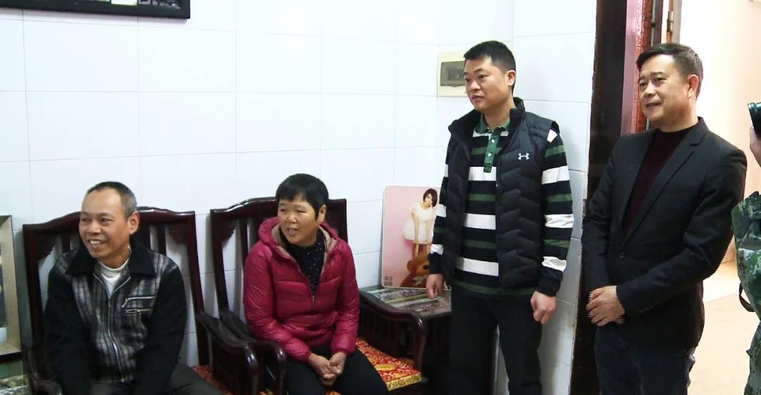 徐成彬与彭晓蓝父母促膝长谈,他代表沙溪镇党委政府向彭晓蓝家庭表示祝贺,向彭晓蓝父母为沙溪悉心培养出优秀的人民子弟兵表示感谢。