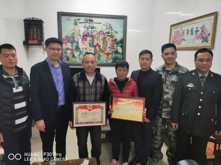 沙溪镇党委书记徐成彬,党委委员刘艺强,镇武装部、退役军人服务中心和圣狮村负责人一行来到彭晓蓝家中,向她的家人送上喜报,表示祝贺!
