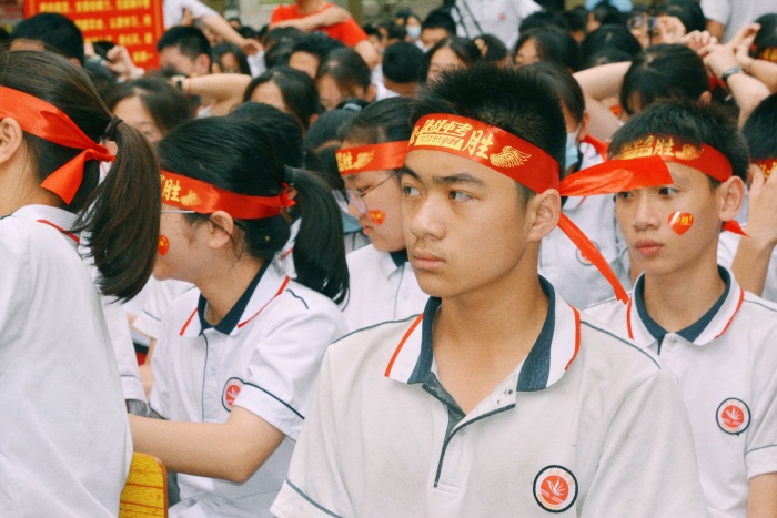 各班同学按照顺序上台进行庄严宣誓。看,高举的横幅;听,呐喊的口号!中考的战鼓已在耳畔敲响,同学们头戴红色抹额,用最嘹亮的声音,用最坚定的眼神,用最饱满的精神,在全校师生面前挥洒恢弘志气!无奋斗,不青春;有志者,事竟成!