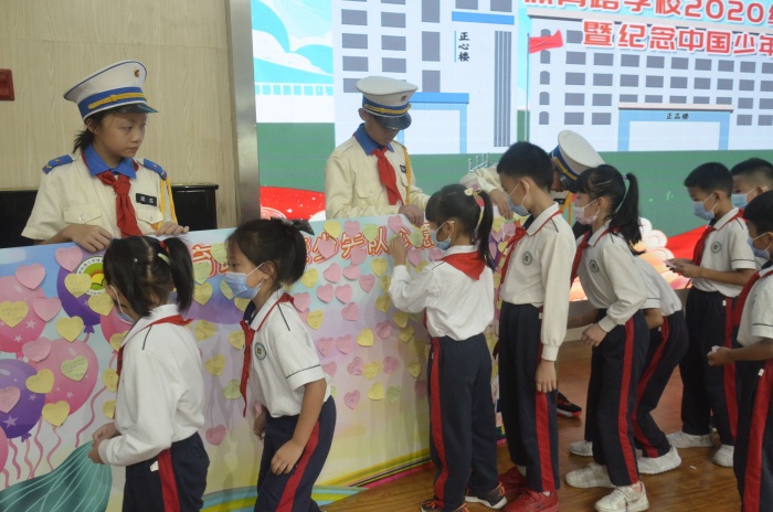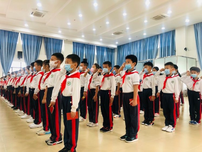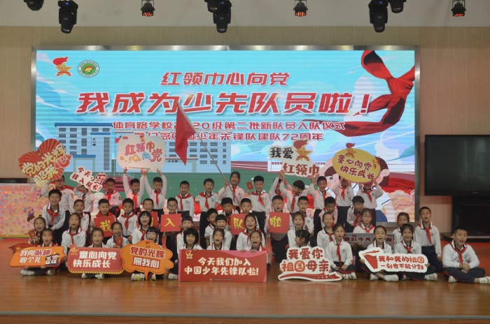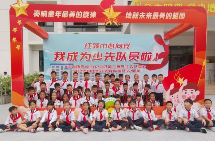 体育路学校深入贯彻落实《中共中央关于全面加强新时代少先队工作的意见》精神,聚焦培养共产主义接班人,有组织、分批次地吸收适龄儿童加入少先队,增强少先队员的光荣感和组织归属感。“六一”前夕,第一批新队员光荣加入中国少年先锋队。金秋十月,在建队日的特殊日子里,2020级第二批新队员光荣加入少先队组织。10月14日上午,体育路学校在正心楼礼堂举行2020级第二批新队员入队仪式。
