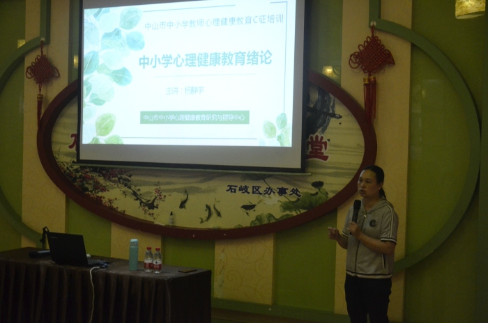 市华侨中学张环老师在《青少年心理特点与教育》主题培训中,引导教师重视和加强对青少年的心理健康教育。