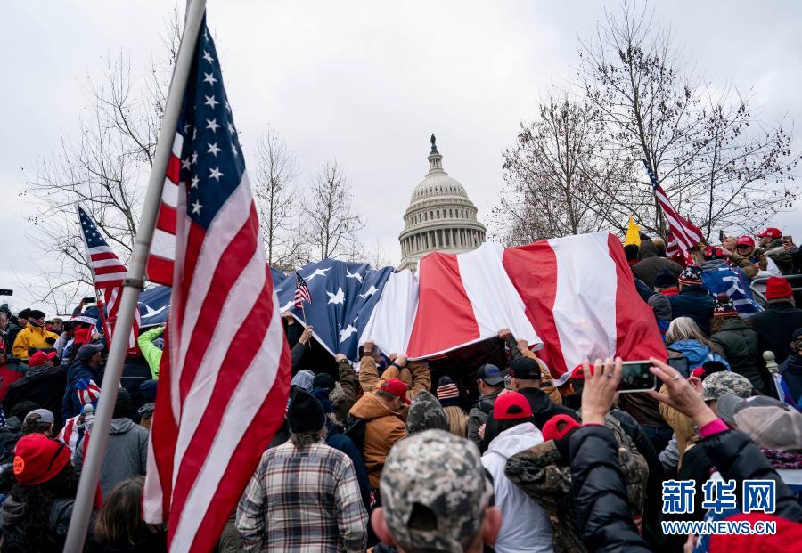 这是1月6日在美国华盛顿拍摄的美国总统特朗普的支持者在国会大厦前举行示威游行的资料照片。新华社记者 刘杰 摄