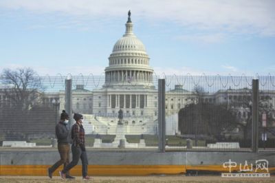 1月24日,在美国首都华盛顿,人们戴着口罩从国会大厦附近经过。新华社 发