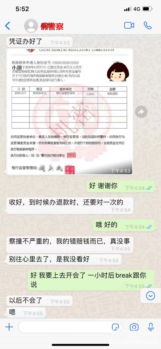为了顺利骗钱,诈骗分子还为小丽“出谋划策”,让其以患新冠病毒为由让父母转账。存款无多的小丽为避免牢狱之灾,只能选择听从“指导”,向父母表示自己在澳大利亚因被怀疑染上新冠病毒,需要25万元澳币(兑换人民币100万元)的保证金,用以作为后期确诊时的治疗费用。并告诉父母为了不产生汇率资费,让他们将钱转到“朋友”的国内银行账户。