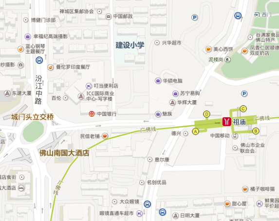 | 交通线路 | 路线一:乘搭地铁广佛线祖庙站(D出口),沿建新路走进入城门头路,沿城门头路走140米,右转进入建设一街,沿建设一街走160米,到达佛山市建设小学。 路线二:乘搭公交车103、109、110、111、113、125、127、130、138、152、160、176、259、G14,科学馆站下车继续向前,沿汾江中路辅路走60米,左转进入建设街,走130米,左转进入建设一街,沿建设一街走30米,到达佛山市建设小学。 路线三:乘搭公交车103、106、111、116、118、122、123、125、126、128、130、137、159、164b、166、G12,祖庙路(百花广场)站下车,沿祖庙路走240米,左转进入城门头路,沿城门头路走140米,右转进入建设一街,沿建设一街走160米,到达佛山市建设小学。 停车:驾车由城门头路进入建设一街后直行20米,右转进入兴华商场停车场。 | ||||||||