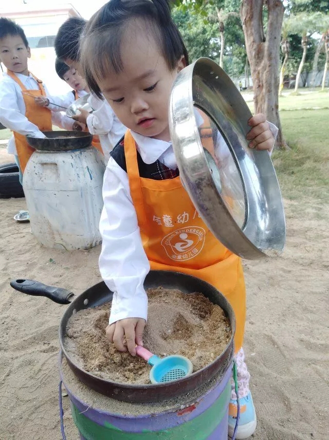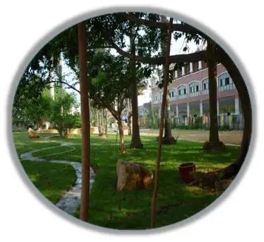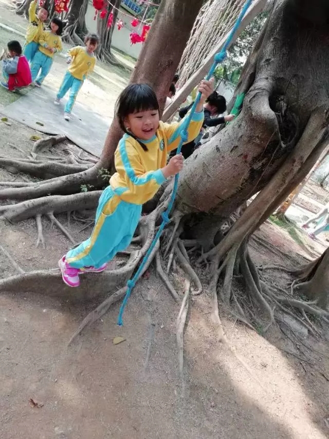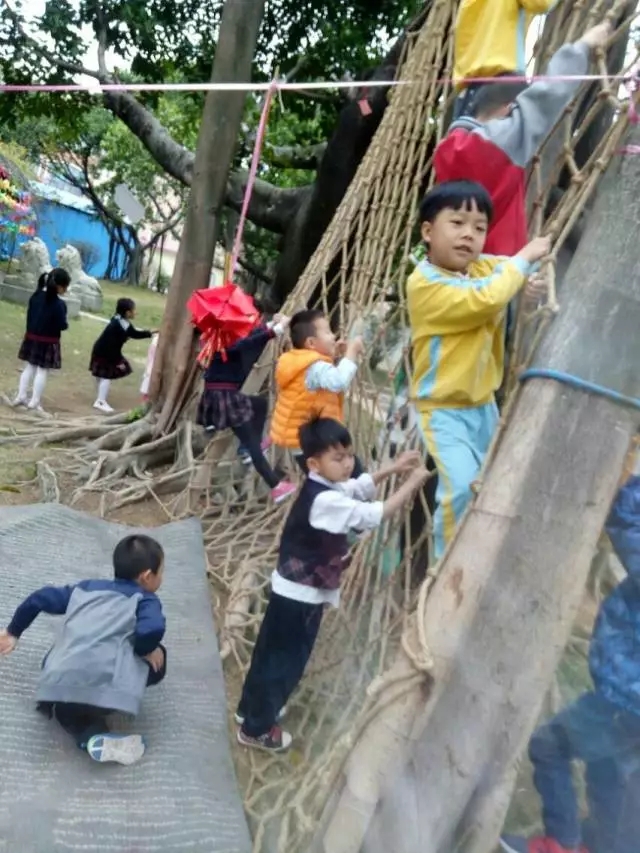 人是环境的产物,为使孩子们自然潜能得以健康生长,户外活动场地宽阔舒展,有4棵历史悠久的大榕树、儿童沙池、儿童戏水池、户外果园、有机菜园、跑道、大操场及户外森林儿童乐园;有规范的户外运动场,配置了大型室外玩具。风车艺术生态长廊、迷宫区、干湿沙区、种植区、泥巴厨房、攀爬区等。
