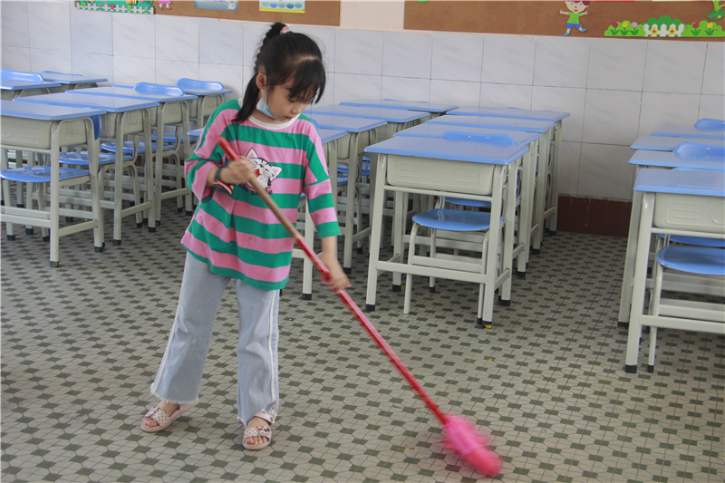 在全体师生和家长义工的共同努力下,环小校园焕然一新,教室、功能场室、操场等地方干净透亮,走廊、楼梯等也没有了纸屑碎石等杂物。今后,环小师生会一如既往地定期开展清洁卫生工作,阻断病毒传播,筑牢全校师生的健康防线。