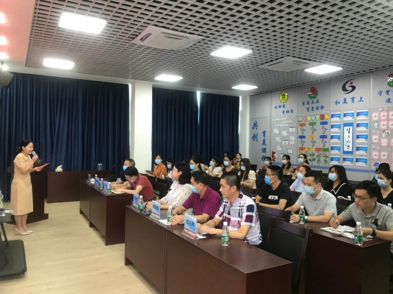 2020年7月3日,在兴华中学文质楼的育美集团课程馆,隆重举行了“学校文化理念建设骨干培训班”开班仪式暨首次专题培训活动。容桂街道教育局副局长麦冬梅女士,顺德区教育发展中心教师发展研究室唐信焱主任,容桂育美教育集团理事长刘伦斌先生,副理事长欧阳琳先生,集团理事、南环小学校长曾庆辉先生,集团研究中心主任、容桂小学副校长郭玲女士,集团办公室主任陈蕊琳女士以及骨干培训班的全体学员出席了本次活动。