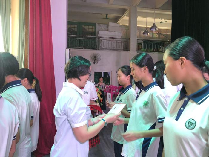 最后,九年级郑振飞级长把寓意着九年级精神的旗帜交到八年级麦景志级长手上,同时也把九年级坚定的信念和奋斗的精神传递给八年级的学子们。