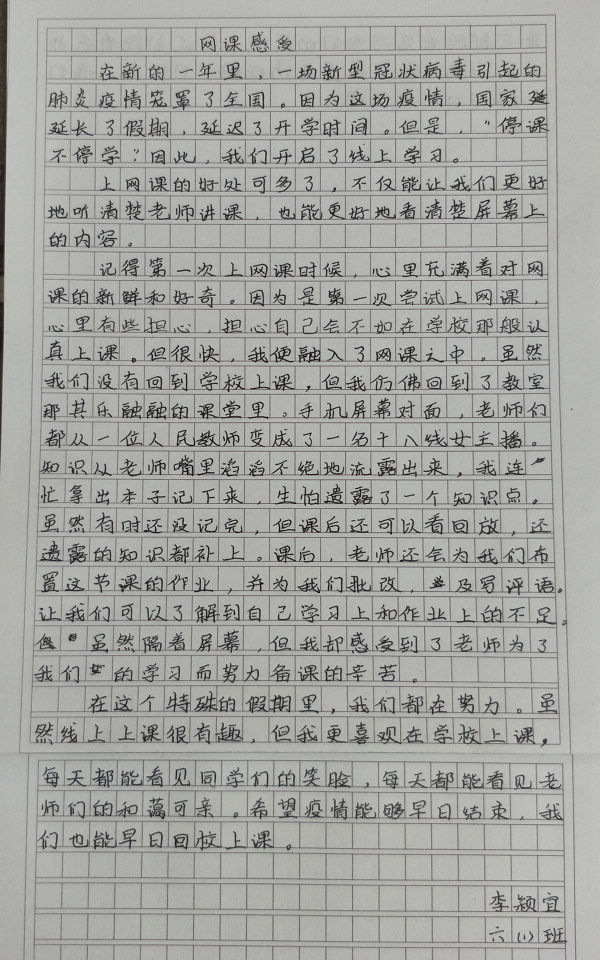 ――罗沙小学学生线上学习心得体会展
