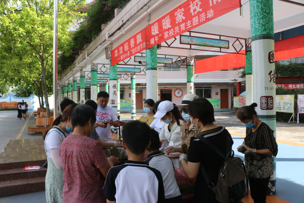 在校园里与学生一起动手裹粽子。家长亲手教学生学习怎么裹粽子,看起来简单的技巧,操作起来也不容易。学生在有序地、满满地操作中感受那种传统习俗,传统文化,为民族文化的传承努力着。虽然裹出来的粽子并没有家长们裹得那么美观,但从实践中感受的却是丰富而快乐!