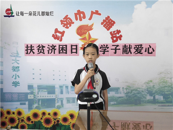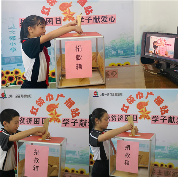 为了弘扬中华民族传统美德和友善互助的社会主义核心价值观,培养少年儿童的爱心和社会责任感。根据广东省教育厅关于组织开展“学子献爱心”活动的倡议,6月29日早上,大都小学通过校园“钉钉”举行“扶贫济困日,学子献爱心”捐款活动。