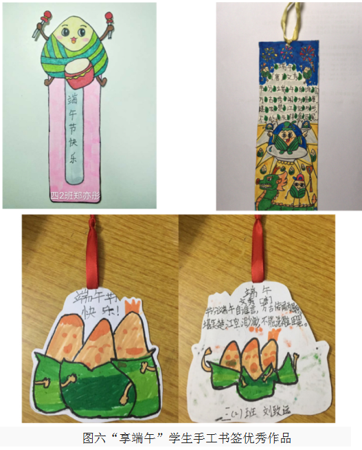 在老师和家长的指导下,孩子们集思广益,制作出许多既新意又精致,富有端午传统文化的手工及绘画作品,在孩子们的巧手下制作出来的“龙舟、粽子”十分生动有趣。看着这些精美的书签绘画以及书法作品,师生们纷纷竖起大拇指,感叹学生们丰富的想象力和创造力。