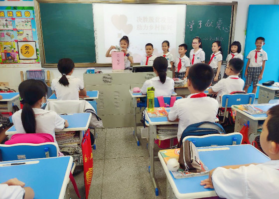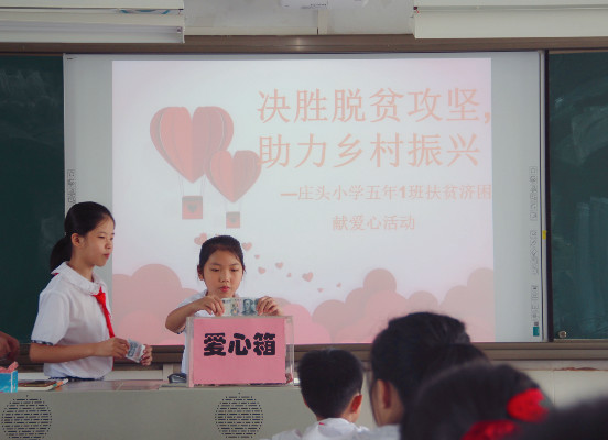 乐善好施、扶贫济困是中华民族的传统美德,助人为乐、患难相扶是构建和谐社会的风尚。2020年是全面建成小康社会目标实现之年,是全面打赢脱贫攻坚战收官之年,也是“广东扶贫济困日”活动10周年。陈村镇庄头小学响应“决胜脱贫攻坚,助力乡村振兴”的号召,6月29日早上,开展“决胜脱贫攻坚,助力乡村振兴”――扶贫济困捐款献爱心活动,全校师生积极参与其中,发起爱心接力赛。