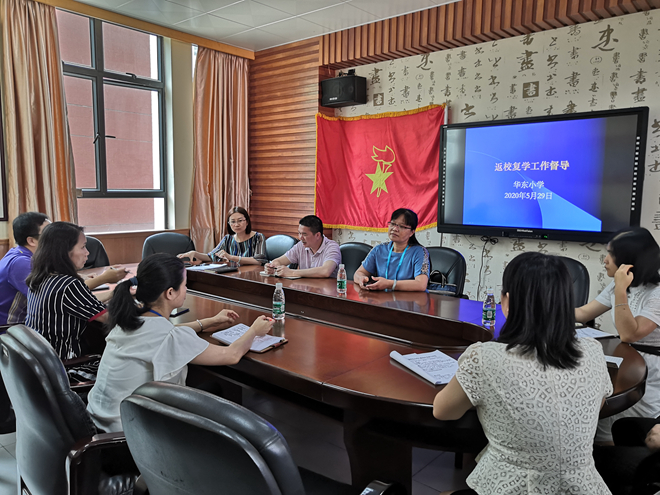 2020年5月29日,华东小学责任督学、坦田小学校长廖杏芳莅临华东小学针对学校返校复学工作进行责任督学经常性督导检查。李耀宗校长协同全体行政人员积极配合开展各项检查工作。