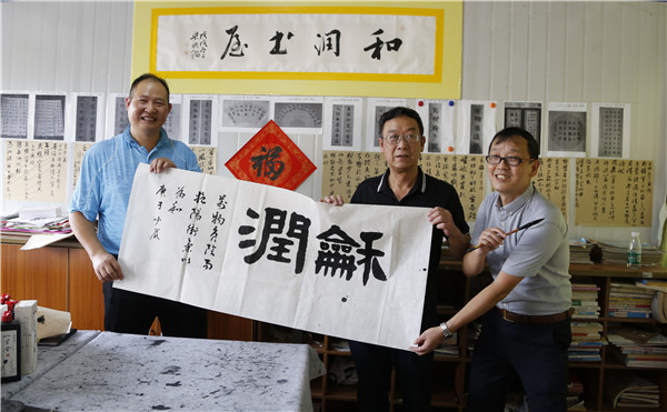 专家们走进“和润书屋”,看到一幅幅学生洋洋洒洒的书法作品,当场感受到浓浓的文化熏陶,他们也忍不住内心的激动和热情,现场挥笔疾书,题下“和润”和“香远益清”两幅墨宝,并以此作为对“和润教育”的肯定,赠予学校留念。