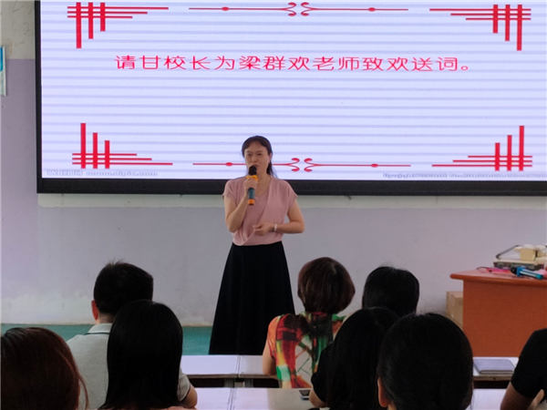 甘爱仪校长为梁群欢老师致欢送词