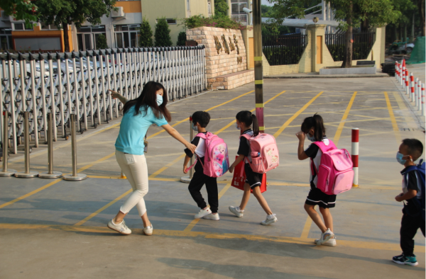 为确保新生报到工作高速、高效、有序的进行,学校前期进行了严格分工、周密部署和精心准备。家长把小朋友带到校门口,由老师分批带进课室。孩子们背着书包,高高兴兴地踏进干净而又温馨的新教室,班主任早已在课室等待学生的到来。老师们亲切的笑容缓解了同学们的紧张焦虑情绪,在互相认识和了解中渐渐消除了陌生感。
