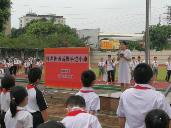 语言文字是文化传承的载体,是国家繁荣发展的根基。根据上级文件指示,9月14日,大都小学开展了以“同讲普通话 携手进小康”为主题的推普周活动。