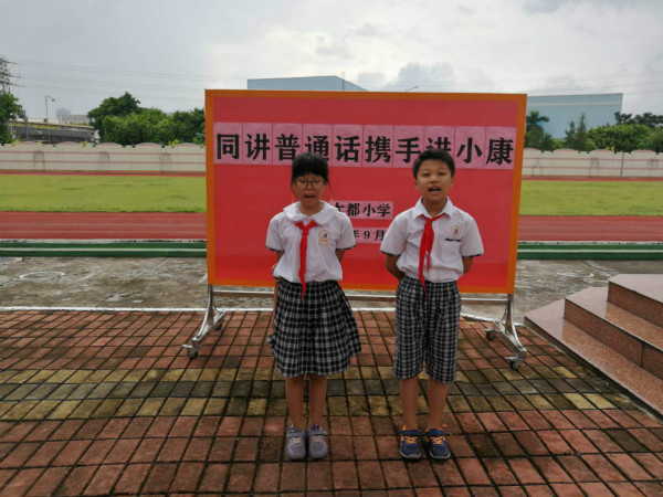语言文字是文化传承的载体,是国家繁荣发展的根基。根据上级文件指示,9月14日,大都小学开展了以“同讲普通话 携手进小康”为主题的推普周活动。