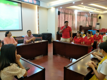 然后由家委会总会长何铭昌先生讲话。何会长代表全体学生以及家长对老师们表达节日慰问和衷心的祝福:感谢全体老师的辛勤劳动,默默奉献,为了学生的成长在努力前行。表示以后会一如既往地继续支持学校工作,为学校做力所能及的事情,与学校一起携手共同努力,去创造更美好的未来。