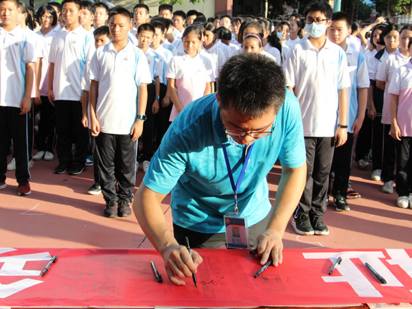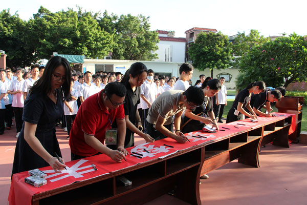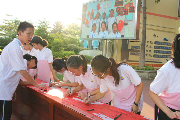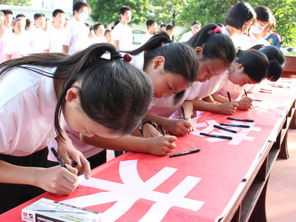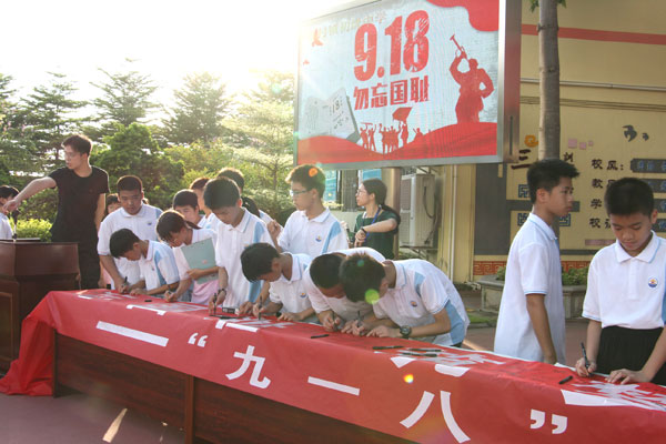 活动首先由各班代表作纪念“九.一八”演讲,同学们时而悲、时而愤的向大家讲述了那段不堪回首而又刻苦铭心的历史。全场一片寂静,仿佛都被带回了那段历史,像是为东北三省的同胞们哭泣,像是为祖国母亲命运祈祷。直到二1班同学的“听那远处传了号角声,星空体育的兄弟姐妹正在用激昂的热血,在悲凉的土地上发出一声呐喊,胜利的曙光即将到来”,才把大家带到现实中来。二12班同学为全体的师生说出了心声“好好学习,报效祖国,把星空体育的国家建设的更加繁荣富强”!最后签名仪式上,全体师生都在“勿忘国耻,筑梦未来”10米长的横幅上庄严的签上了自己的姓名,每一个姓名不仅仅有星空体育对祖国的美好祝愿,更有星空体育的励志“好好学习,报效祖国,把星空体育的国家建设得更加繁荣富强”!