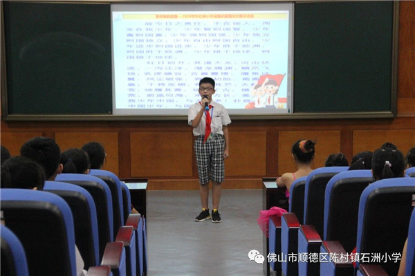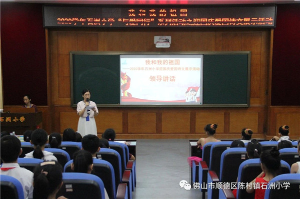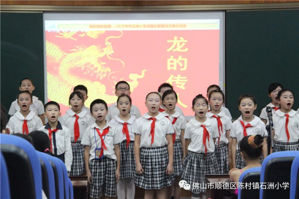 2020年9月28日下午,石洲小学电教室主会场、各班分会场上的阳光少年们爱国热情高涨,歌舞《我和我的祖国》拉开了本次活动的帷幕。紧接下来的节目形式多样,丰富多彩。诗歌朗诵《我骄傲 我是中国人》、《中华颂》慷慨激昂,把对祖国的赞美与热爱表现得淋漓尽致。《致敬一线抗疫英雄》,感人至深,听者无不感动于“逆行者”抗疫精神的伟大。一曲《龙的传人》那稚嫩的声音,纯真的笑容,爱国的情怀赢得了在场所有观众的阵阵掌声……随后,何培雯副主任对本次活动进行了小结,赞扬了各年级组、各班级展现了石洲小学阳光少年们积极向上,奋发进取的精神面貌。经过激烈的角逐最后《国家》荣获最佳表演奖、《我和我的祖国》荣获最佳创意奖、《龙的传人》荣获阳光风采奖等各项奖项。