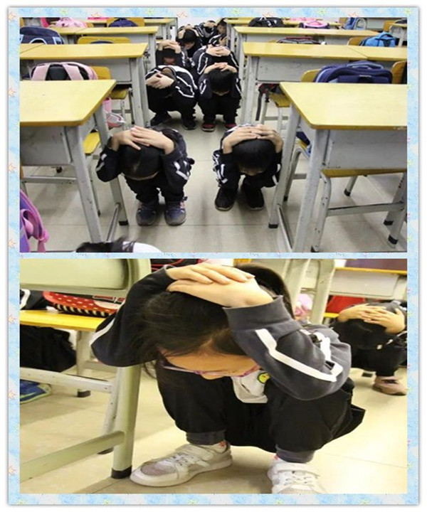 下午4时35分,随着一阵急促的警铃声大作,演练正式开始。本次演练包括两个部分:地震避险和震后疏散。当听广播连续长鸣60秒,广播报“现在地震来袭,实施紧急避险”,教师立即告知学生“地震来了,同学们注意避险”,并指挥学生就近蹲在课桌台旁边,并打开所有的门。只见教室内师生优先选择课桌、墙边的活命三角区,迅速地蹲下避险,空间不足的师生则用书包或书本保护头部,在课桌旁避险。1分钟后,当学校广播播报“地震应急避险结束,实施紧急疏散”。教师告知学生:“现在开始撤离教室”,跟班教师一前一后引导学生疏散,按指定逃生路线,迅速有序地疏散到学校运动场的安全地带。随即各班主任清点人数。整个地震避险及疏散演练过程秩序井然。