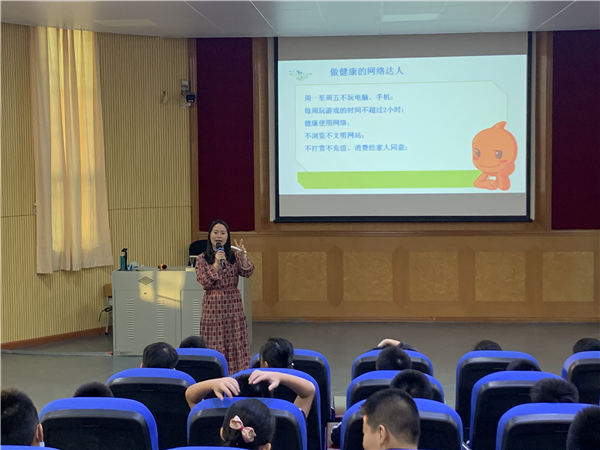 整个讲座气氛活跃,通过师生互动、观看视频、问题抢答等形式,让同学们认识到作为学生自身要遵守网络道德规范,养成良好的上网习惯,选择浏览和自己的日常学习生活有益的信息,并且要注意保持自制力,做到不沉浸于网上聊天、游戏等虚拟世界,做健康的网络小达人。最后,同学们还通过搭配动作大声宣读“健康上网,健康健康上网”,将活动推上高潮。