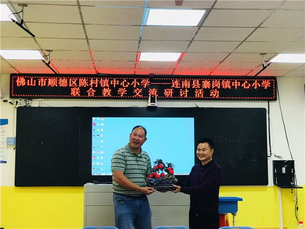 2019学年陈村镇中心小学邓金山老师赴连南寨岗镇中心小学支教。一年下来,邓老师不但把陈村镇中心小学“和润教育”的先进教育理念和课改模式带到寨岗镇中心小学里,而且还把两校合作互进的友谊种子深深埋下。