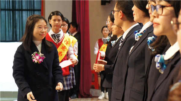 学校行政办公室主任刘海平主持了大会。由纪中学子朗诵的《古经新编 传承共融》拉开了颁奖大会的序幕。接着,大会播放视频,回顾一年来学校所做的工作及取得的成就。