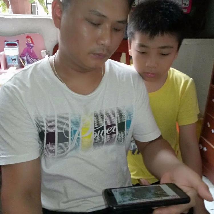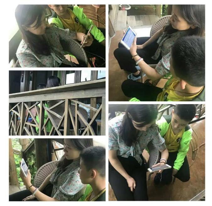 家长与孩子共同观看由海尾小学老师