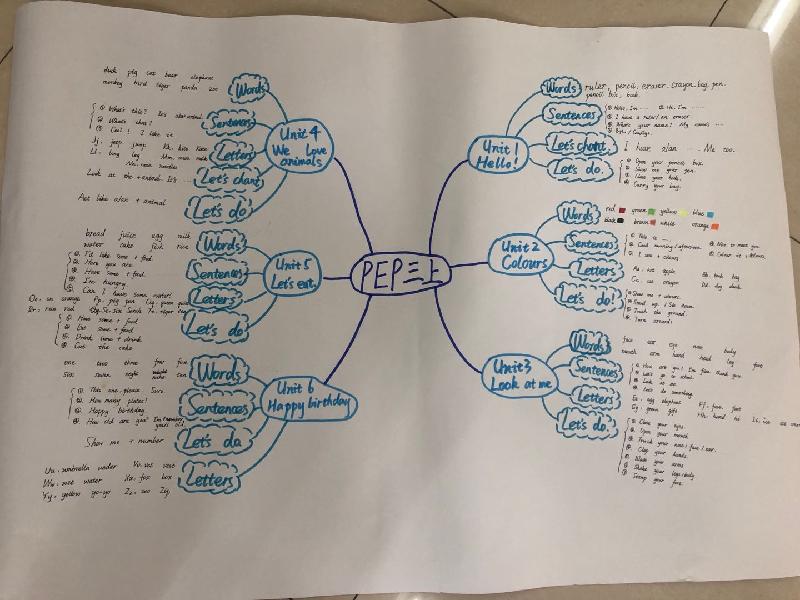 在思考和讨论怎么教,如何教之前,教材分析是备课中必不可少的环节。对教材做好分析,便知道自己要教什么,上课自然有重难点。而思维导图作为现今流行的梳理方式,早与教育相融合。今日,英语科组开展了以思维梳理教材,导图展现分析的教研活动,以备课组为单位,用思维导图对所在年级的英语教材进行了分析。