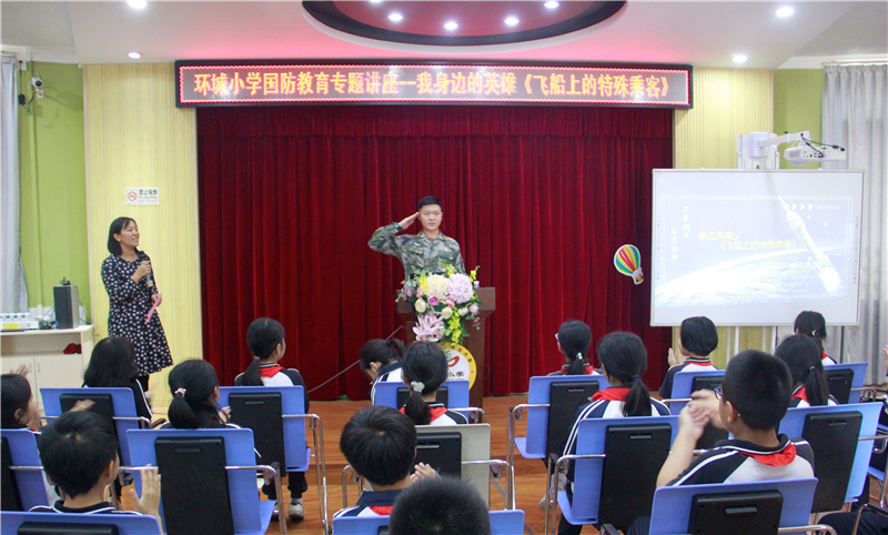 刘连长以“飞船上的特殊乘客”为主题,向环小学子们分享了在空军部队中的所见和所感。随后,刘连长向孩子们详尽地介绍了我国航天事业所取得的成就,分享了杨利伟、景海鹏等宇航员为我国航天事业所做出的卓越贡献。