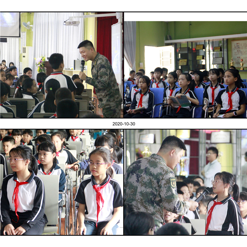 没有国防,就没有国家的安全;没有国家的安全,人民的生活、生命都没有保障。为进一步拓宽环小学子的知识面,增强国防意识,10月30日下午,我校特邀深圳中航顺德分公司顺德区民兵应急连连长刘冬冬同志来为孩子们开展国防知识讲座。郭燕霞副主任主持本次活动,五年级全体师生全程认真聆听。