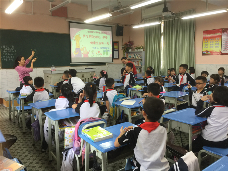 课堂上,孩子们听得全神贯注,一只只小手高高举起,饶有兴趣地对上课的家长问这问那,一节课下来,孩子们有了不少的收获。
