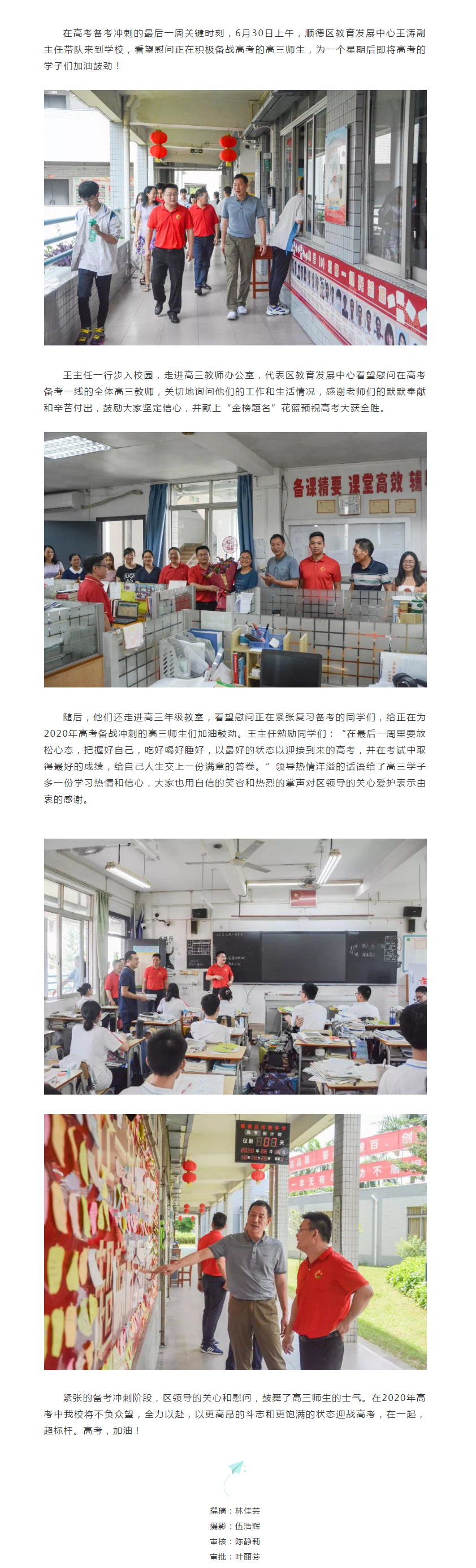 鼓舞士气,决战高考!区教育发展中心领导看望慰问高三师生