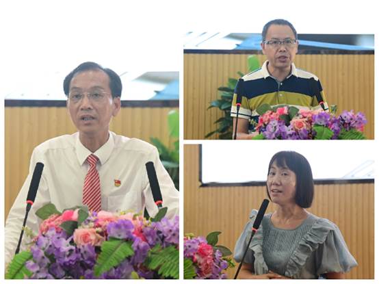 随后,华侨中学吴剑平校长、乐从中学费贞元老师、容桂海尾小学陈翠校长分别代表名校长工作室、名班主任工作室、名教师工作室首席主持人代表上台发言。吴剑平校长认为,顺德正处于教育高质量发展的大好时代,名校长要做好发动机、传导器和宣传队,培育人才、引领未来;费贞元老师提出“乘大湾区东风,立顺德德育风格”,在今后的工作室建设中尽显名师教育初心、专业修炼及名师担当;陈翠校长则强调名师除了进行“术”的传递,更应有“道”的开悟,呼吁各位名师永不停止学习和思考,坚守内心精神信念。